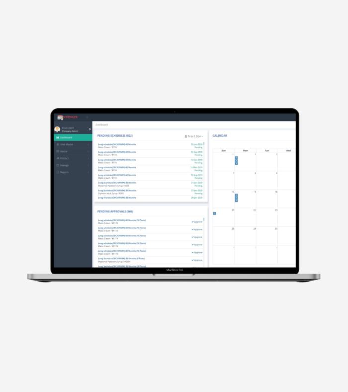 - Information about all products, batches, schedules, and calendars to get easy information about schedules and other parameters.
